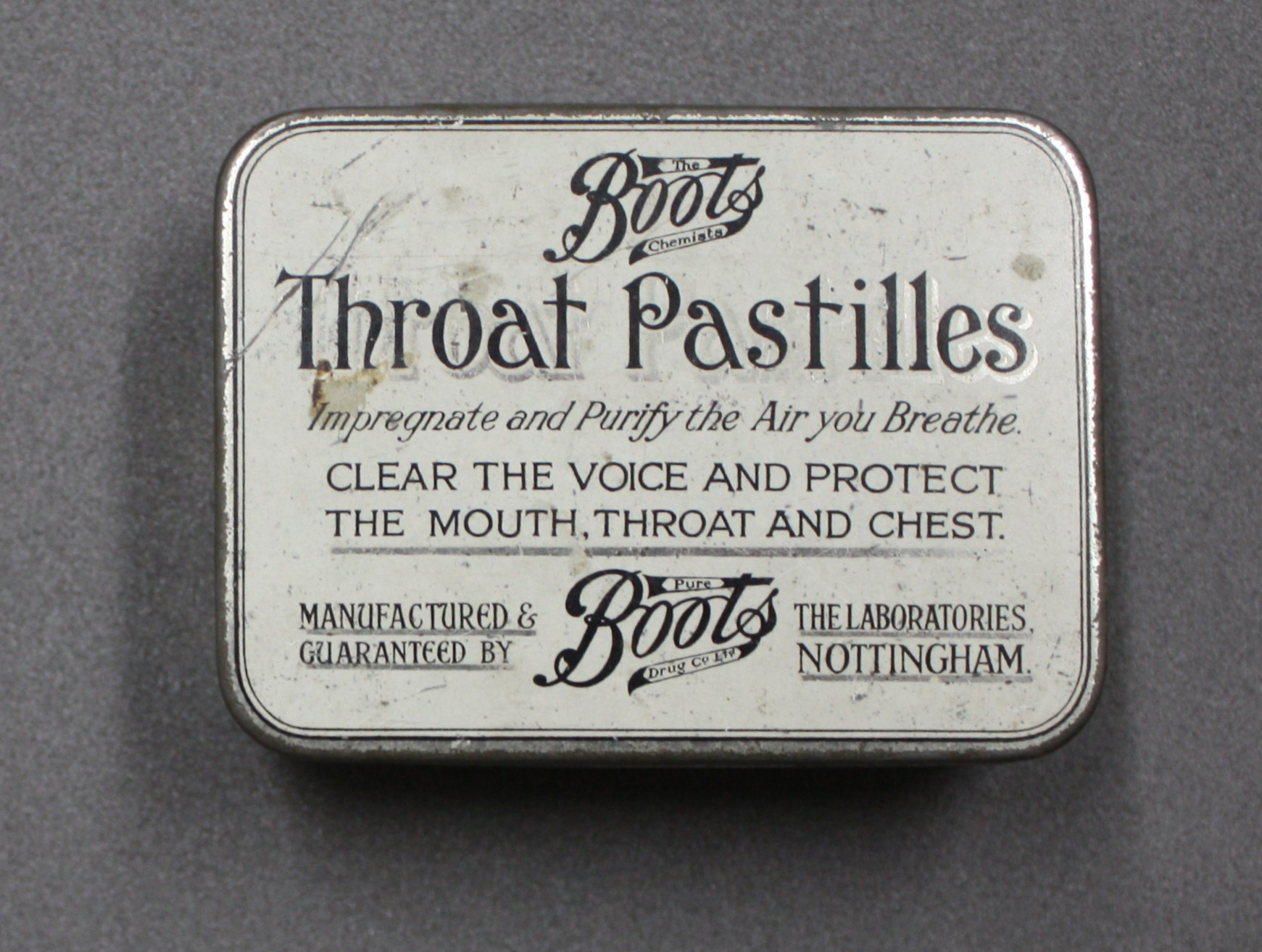 Boots Laboratories, Nottingham, “Tin of Throat Pastilles,” Emsworth Museum, accessed April 18, 2026, http://emsworthmuseum.org.uk/emcms/items/show/9651.