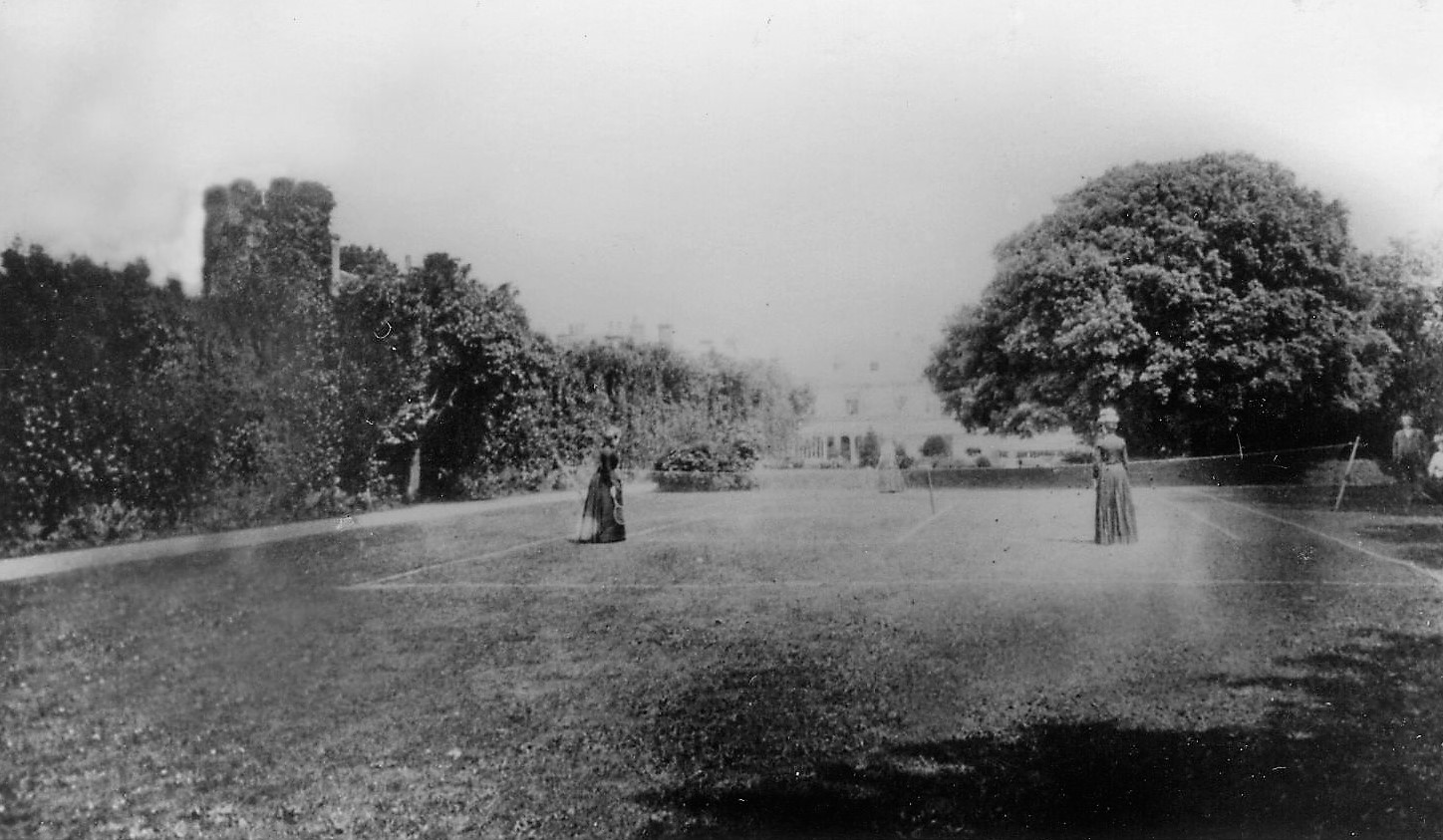 Photograph of Tower in Tower Street, showing ladies on a tennis court. This is the only known photograph of the Tower, taken early 20th century or late 19th Century