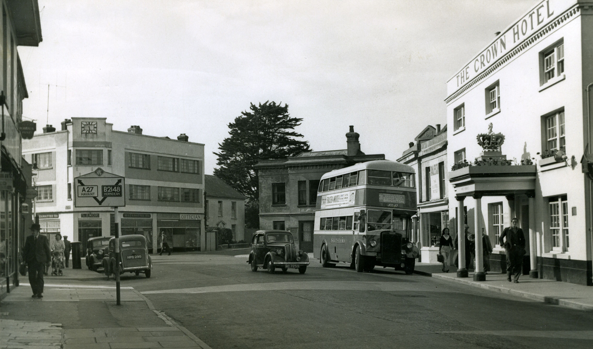 F. Frith Archive Films for postcards , “B/W photograph of The Crown Hotel, Emsworth - taken in 1955, Part of a collection of 38 black and white photographs of Emsworth Views - 1955, 1960, 1965 purchased from F.Frith and Co,” Emsworth Museum, accessed April 30, 2026, https://emsworthmuseum.org.uk/emcms/items/show/1917.
