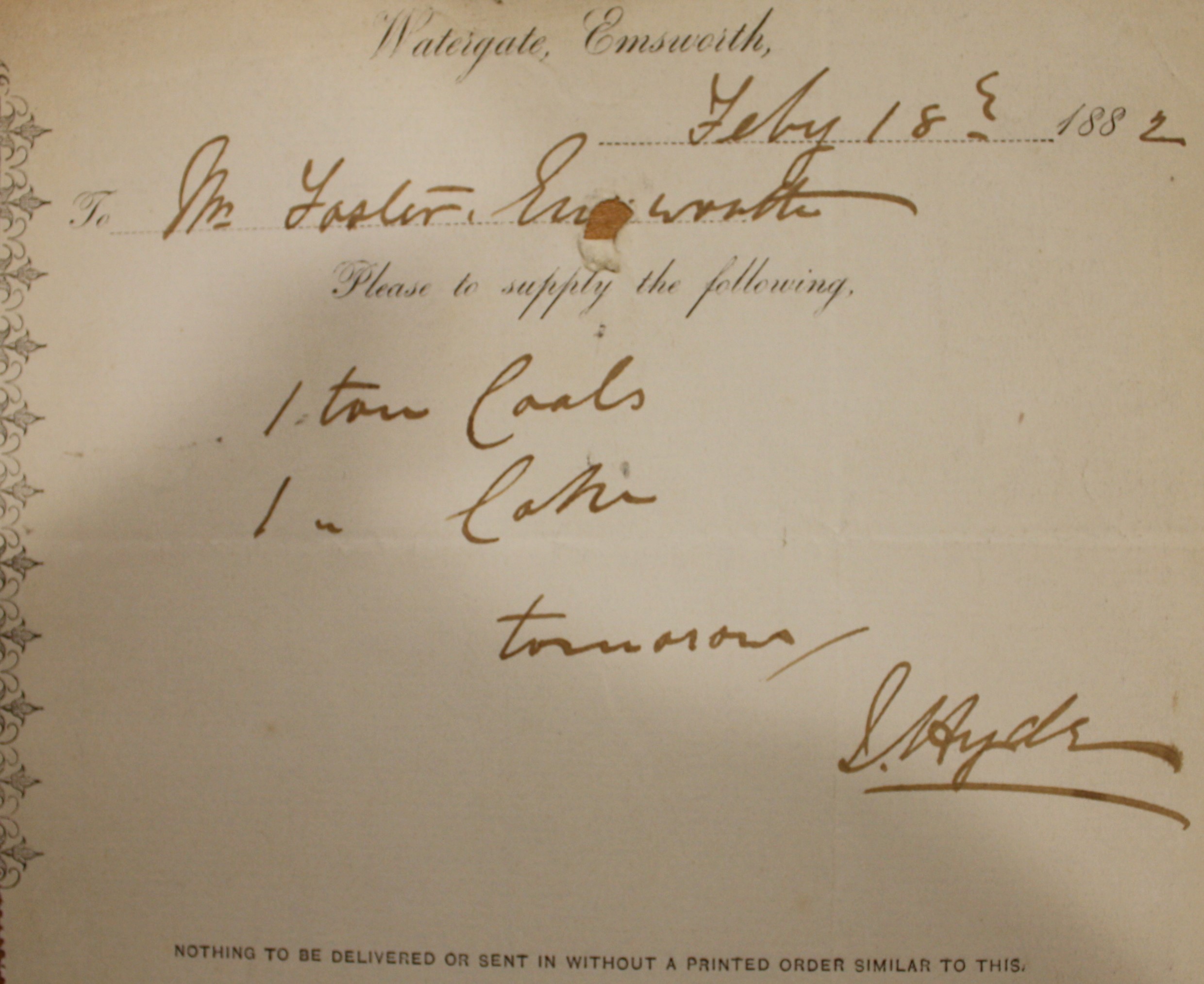 Watergate, Emsworth, “Order for supply to Watergate, Emsworth.,” Emsworth Museum, accessed April 25, 2026, https://emsworthmuseum.org.uk/emcms/items/show/2860.