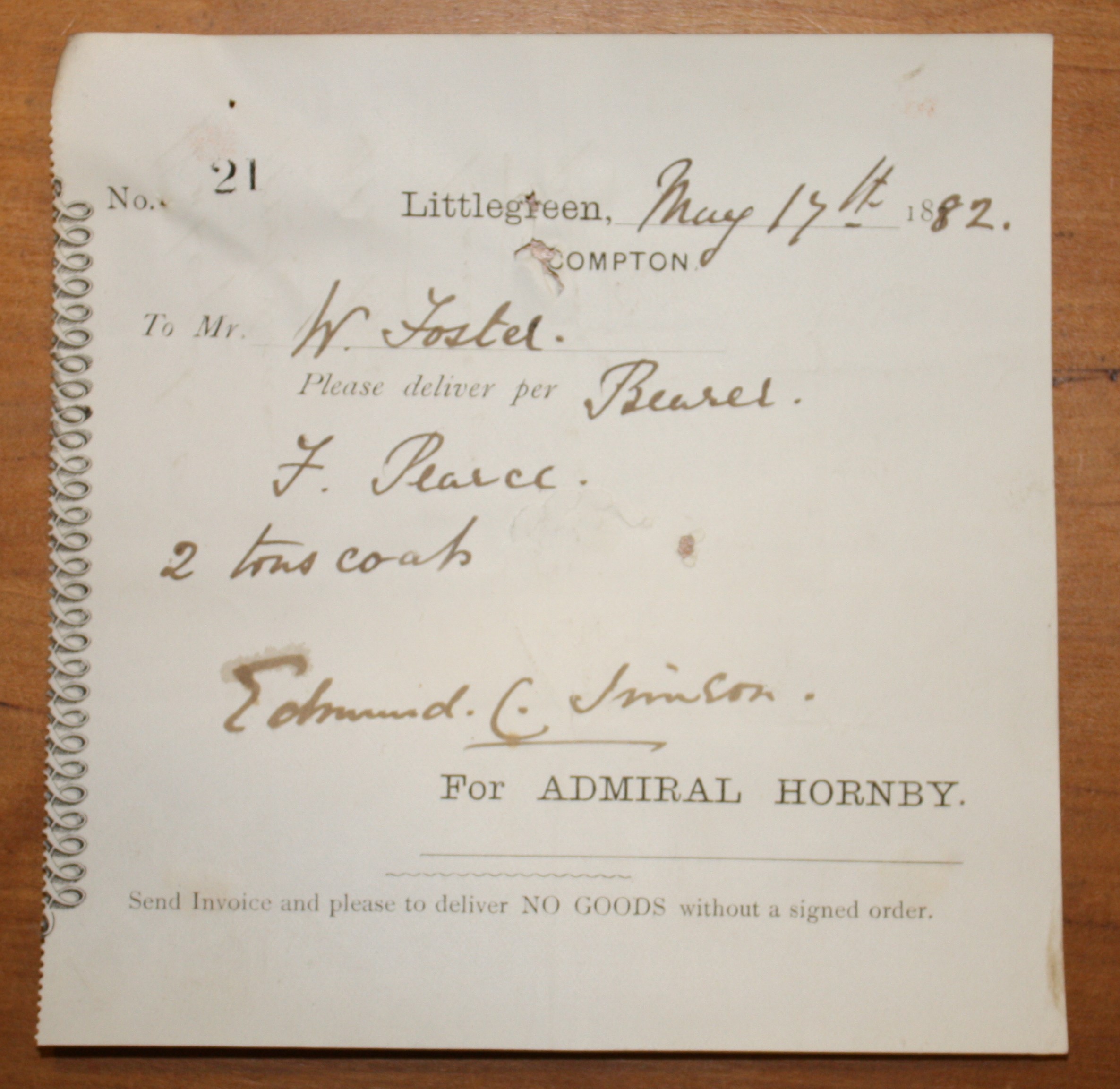 Littlegreen, Compton , “Order for supply to Littlegreen Estate, Compton.,” Emsworth Museum, accessed April 17, 2026, https://emsworthmuseum.org.uk/emcms/items/show/2884.