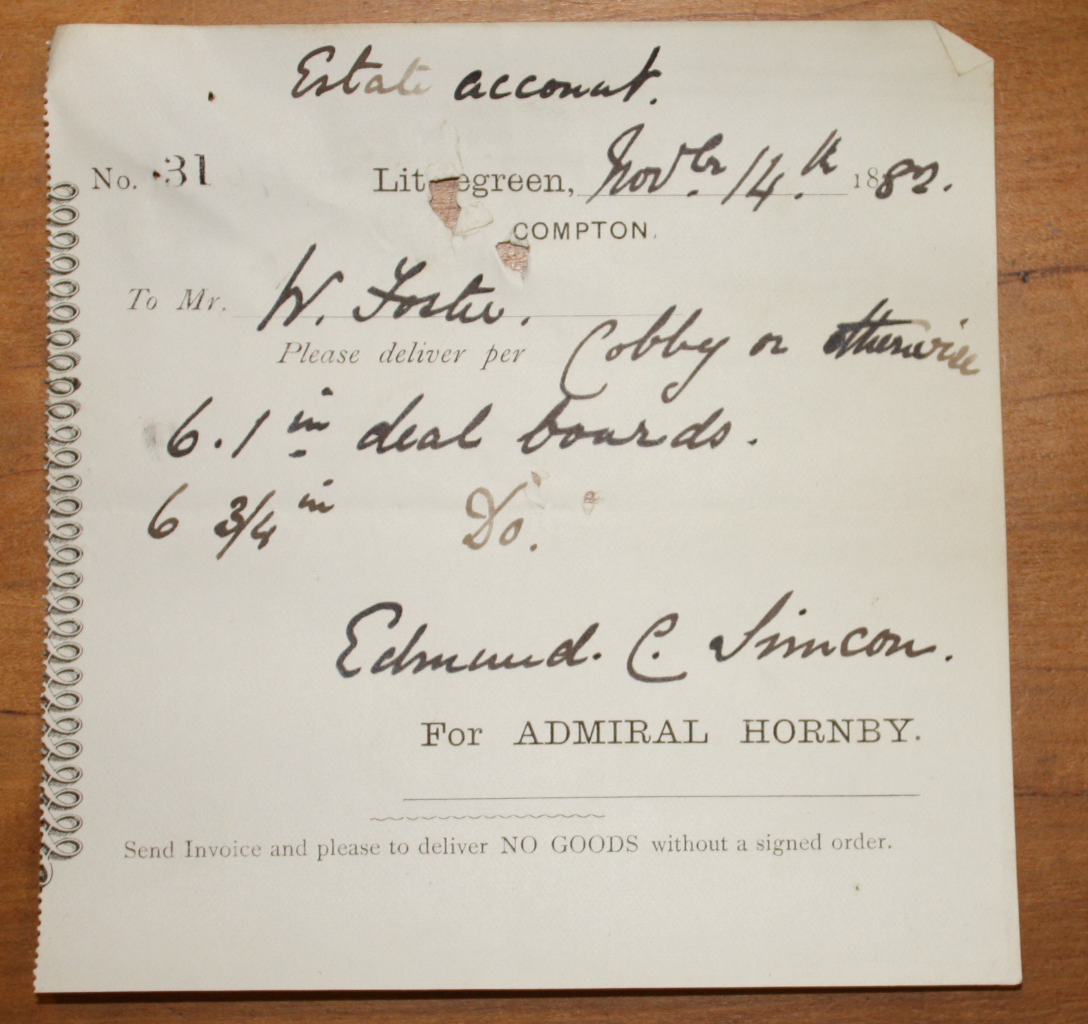 Littlegreen, Compton, “Order for supply to Littlegreen Estate, Compton.,” Emsworth Museum, accessed April 17, 2026, https://emsworthmuseum.org.uk/emcms/items/show/2892.