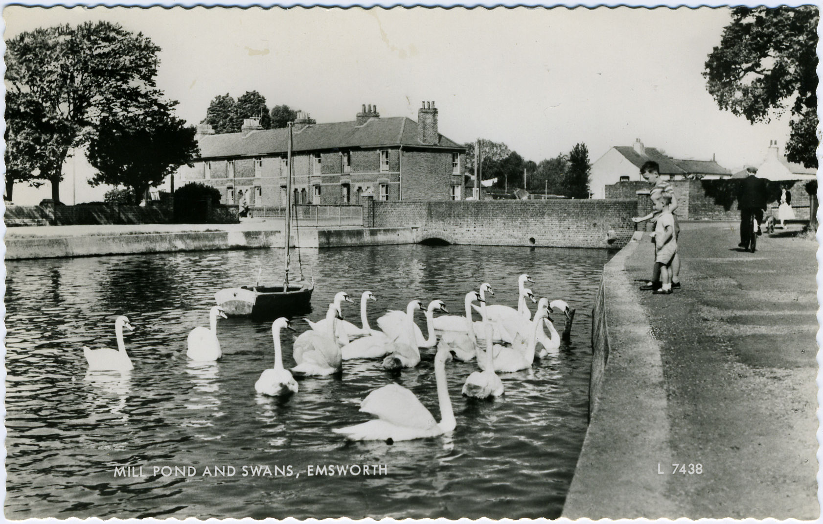 “Postcard - view of Mill Pond and swans (Ref L7438),” Emsworth Museum, accessed April 26, 2026, https://emsworthmuseum.org.uk/emcms/items/show/4221.
