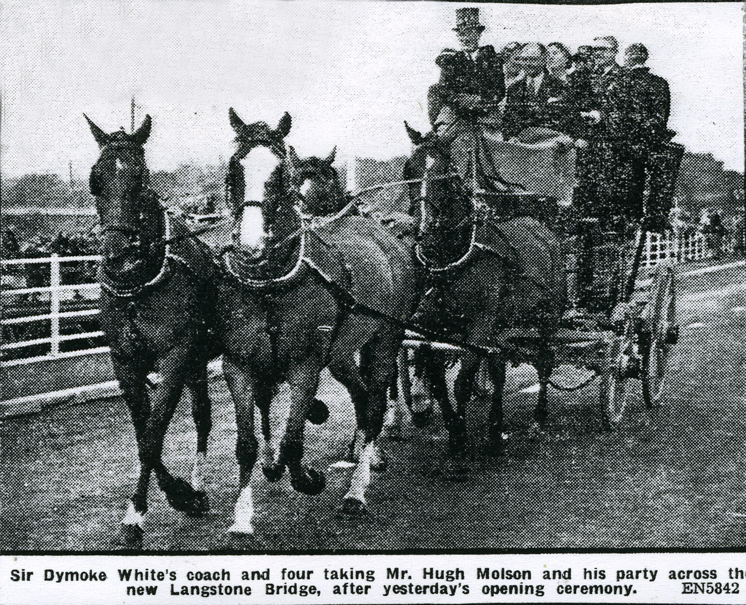 Photograph of Sir Dymoke White, plus coach and four - Hayling Bridge